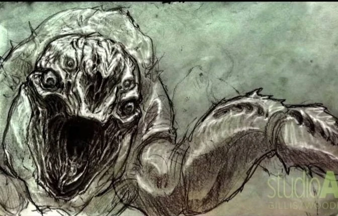 Esta criatura iba a aparecer en los primeros borradores del guión de Shane Black y Fred Dekker para El Depredador, ya que requerían que una colección de criaturas alienígenas se liberaran de la nave espacial estrellada. La idea era que un grupo rebelde de depredadores extrajera ADN para su propio uso de un grupo diverso de especímenes recolectados de toda la galaxia.